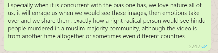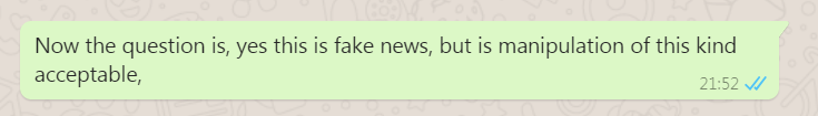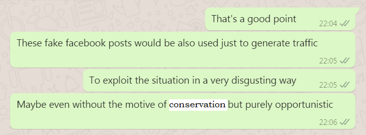 In the Bandipur national park incident, manipulated images were virally spread, is it then acceptable when one justifies this action as setting up a controlled blaze to extinguish the wildfire started by lobby groups or multinational corporations. Is this action acceptable when the motive is conservation of nature.