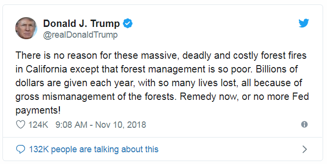 In multiple interviews trump blamed the forest management and stated climate change has no role to play in the increasing size and frequency of forest fires all around the world.